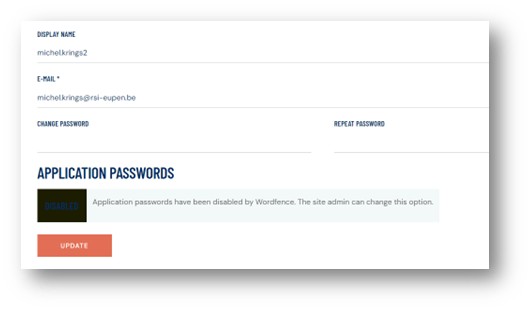 Un fois votre nouveau mot de passe défini, il faut le confirmer en cliquant sur UPDATE.