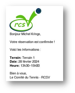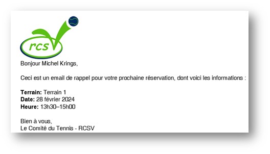 Entre temps, le programme vous envoie un mail de confirmation de votre réservation et ensuite un rappel de votre réservation.