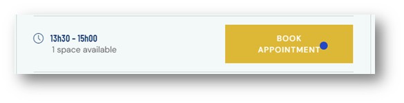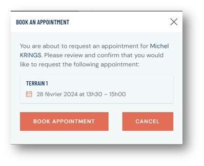 Cet écran me permet de voir la réservation effectuée à l’instant et d’éventuellement l’annuler en cliquant sur le bouton bleu CANCEL APPOINTEMENT