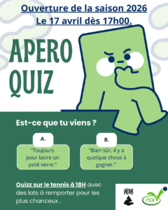 A la sortie des terrains, on vous invite à venir boire un verre au bar et à participer à notre APERO QUIZZ.
